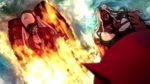 Her hair is black in the shape of two drill pigtails her eyes a deep red and also has golden earrings as well as.
